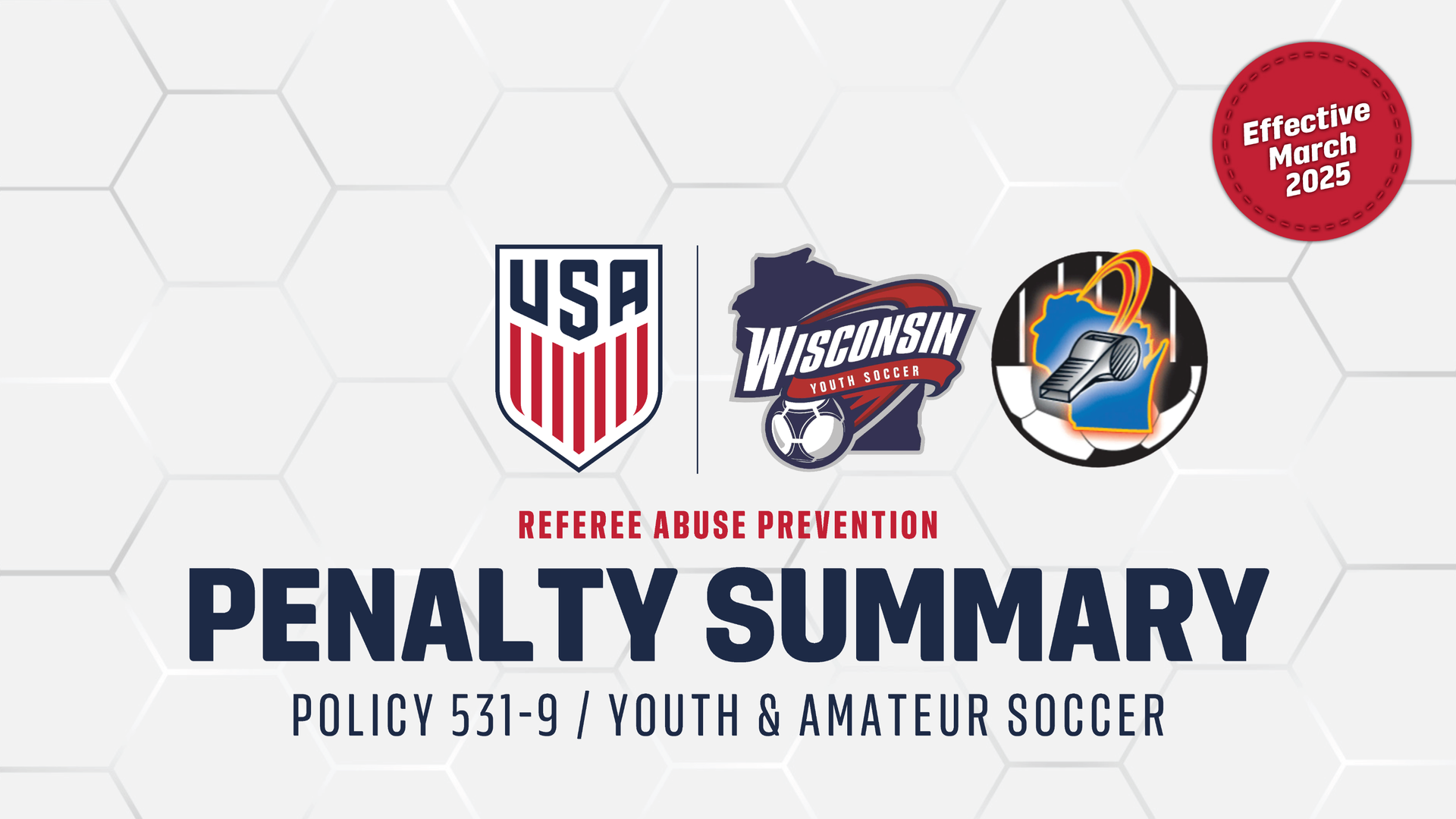 In March 2025, U.S. Soccer's updated Referee Abuse Prevention Policy (Policy 531-9) takes effect. This policy update includes clearer definitions for physical and non-physical abuse - as well as stronger suspensions for reported referee abuse.